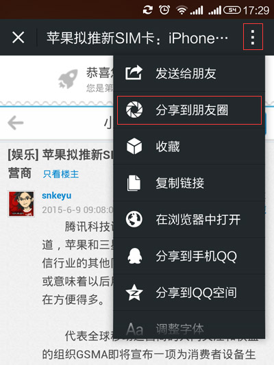 手機穿越看帖分享朋友圈就是這么簡單